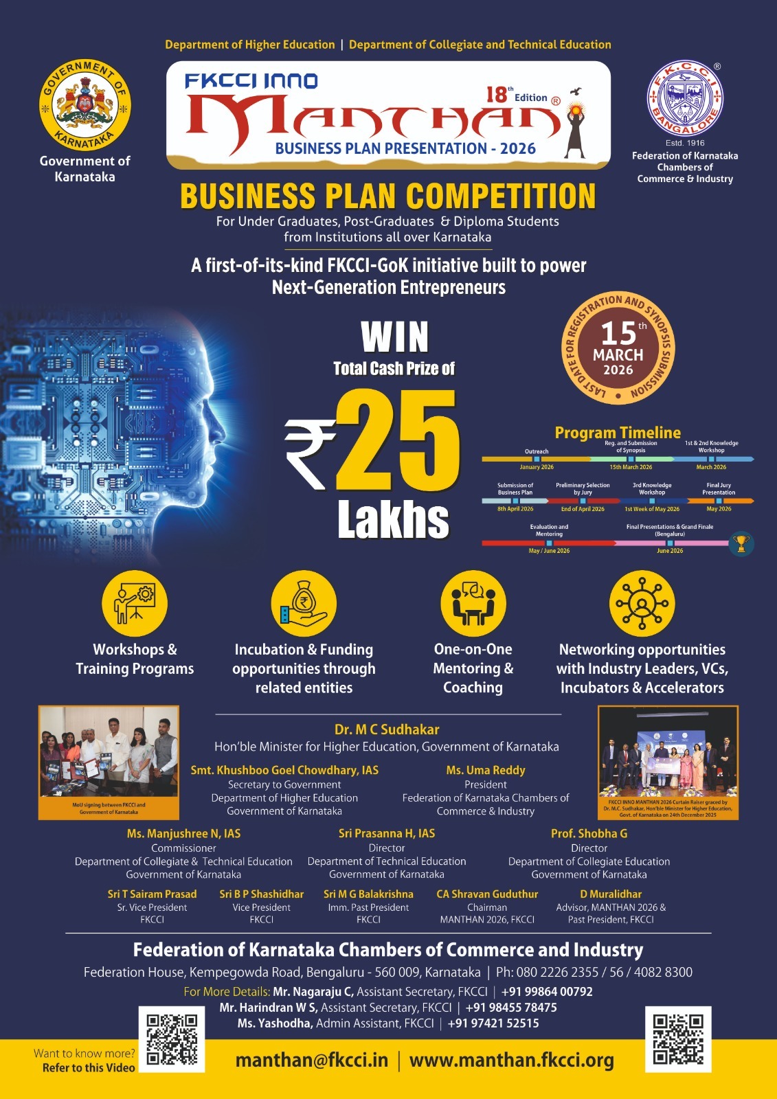 For the first time in its history, FKCCI is collaborating with the Department of Higher Education, Government of Karnataka, for this edition titled ‘Inno-MANTHAN’, to further strengthen innovation and entrepreneurship in young minds across the State of Karnataka.